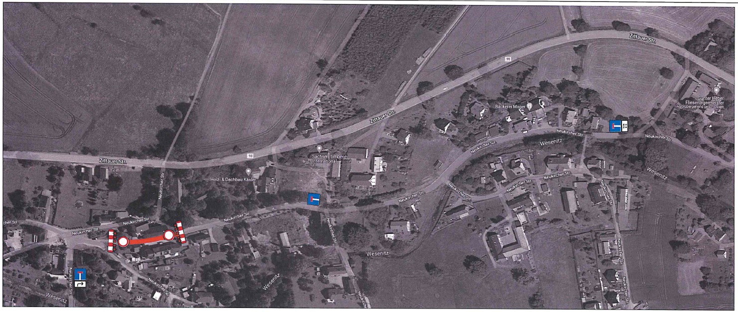 Am 14.11.2022 wurde hier auf der Homepage über die Teilsperrung der Neukircher Straße (ab Kreuzungsbereich „Altes Spritzenhaus“ bis Nr. 55) in der Zeit vom 17.11.2022 – 23.12.2022 informiert. Die Bäckerei Mager ist weiterhin erreichbar über die öffentlich gewidmete Straße – Start Neukircher Straße 43 (Brettmühle). Die Ausschilderung, die Lage der Baustelle und die Erreichbarkeit der umliegenden Häuser entnehmen Sie bitte der Anlage.